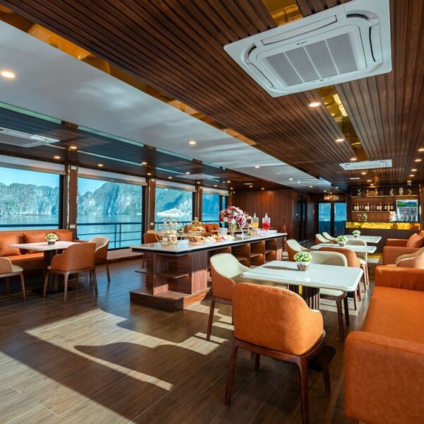 Ambrose Cruise – a luxurious gem on Halong Bay – is the ideal choice for a day cruise through this world-renowned natural wonder. Featuring an elegant three-deck layout and a capacity of up to 99 guests, Ambrose delivers a refined and memorable maritime experience.